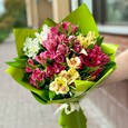 Розовый букет гвоздик и альстромерий