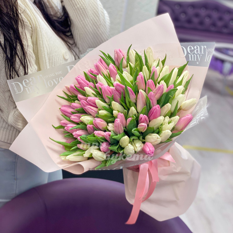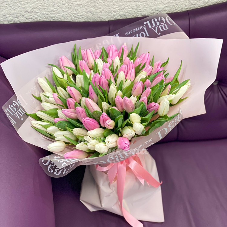 • Белые и розовые тюльпаны, 101 шт.