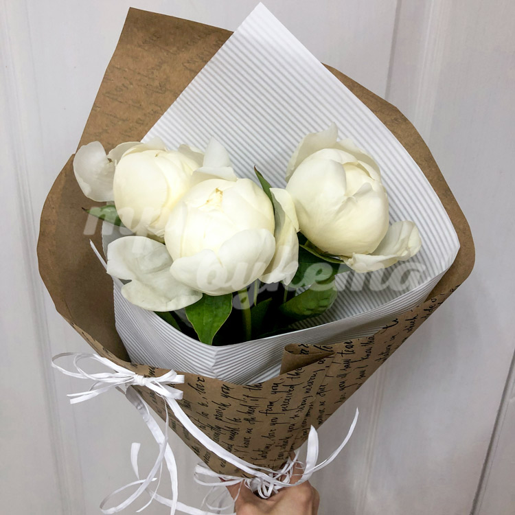 3 белых пиона Дюшес