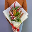 Бокс с кофе и фиолетовыми эустомами