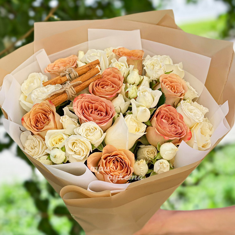 Букет белых роз и роз Капучино на 8 марта
