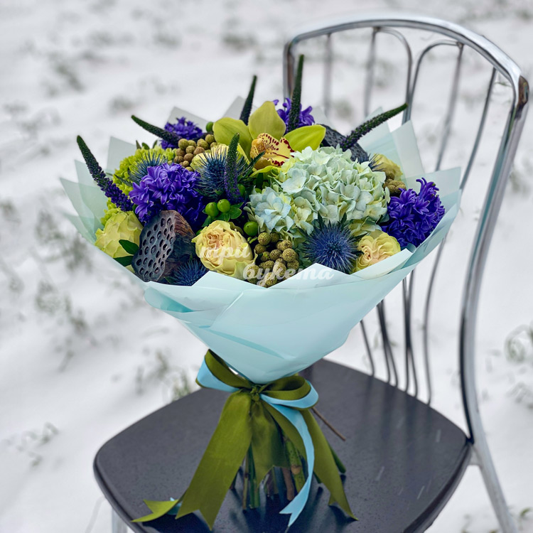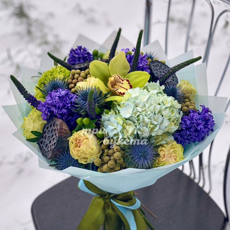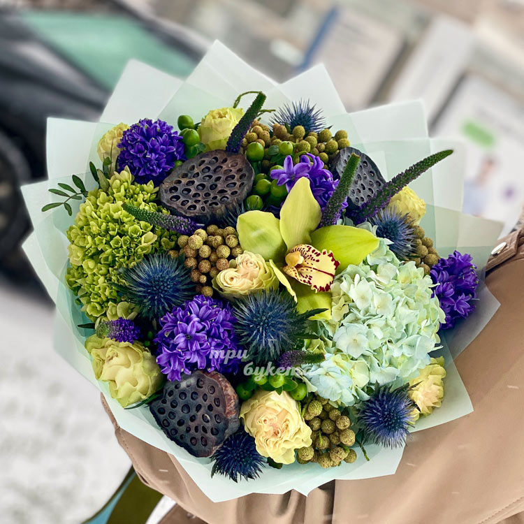 Букет гортензий, гиацинтов и лотосов