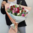 Букет из 51 куст. розы и альстромерии