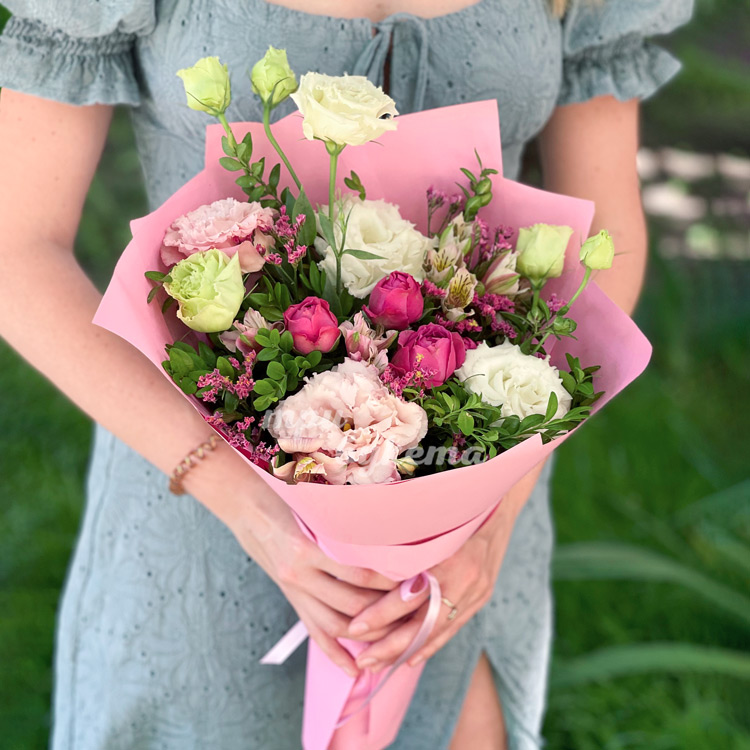 Букет из эустом и кустовой розы