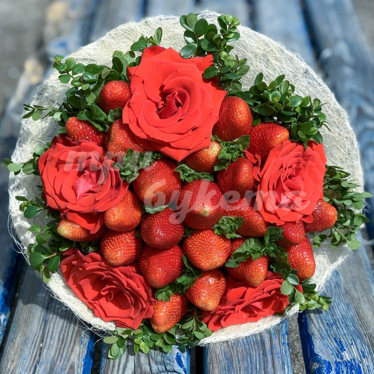 Букет из клубники и 5 алых роз