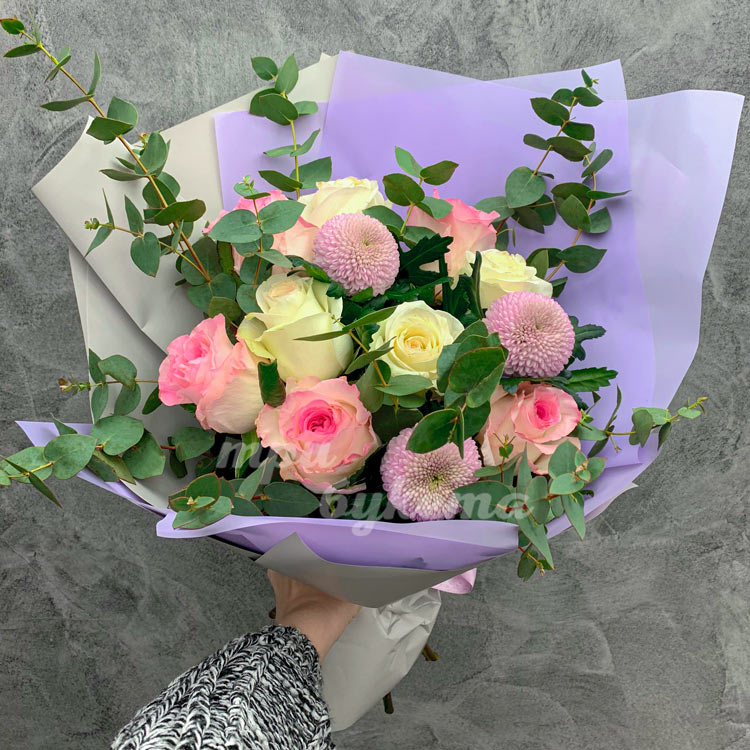Букет из роз с эвкалиптом