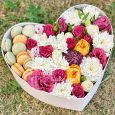 Эустомы и макаруны в коробке