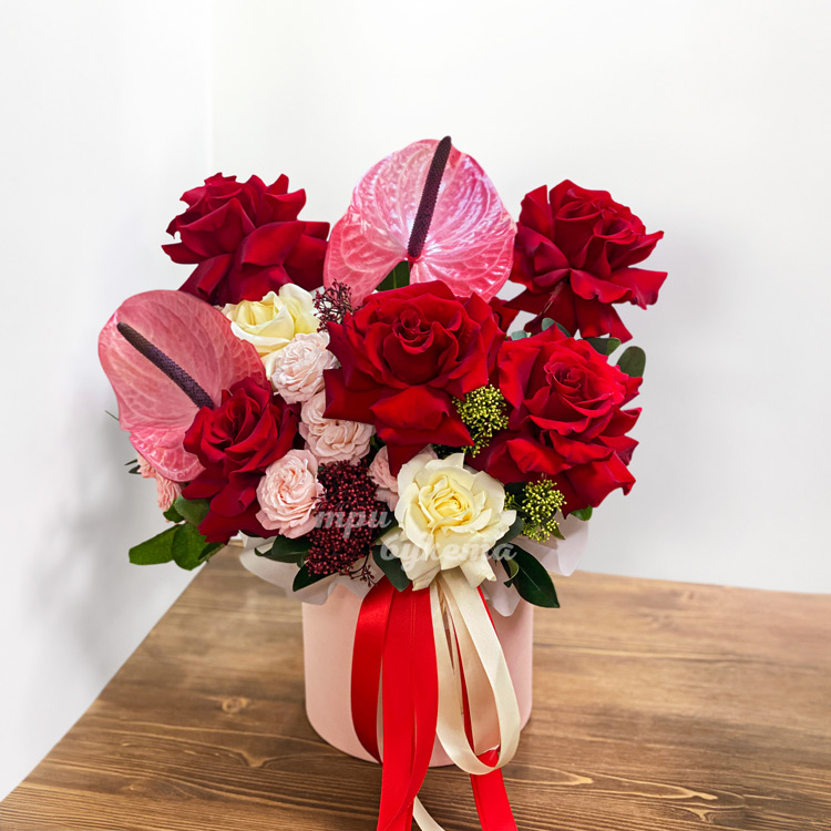 Французские розы и антуриумы в коробке