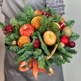 Композиция еловых веток и украшений