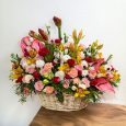Корзина ирисов и тюльпанов с плитками шоколада