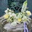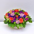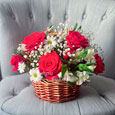 Корзина коралловых роз и розовых пионов