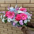Корзина пионовидных роз и статицы
