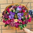 Корзина розовых роз и орхидей