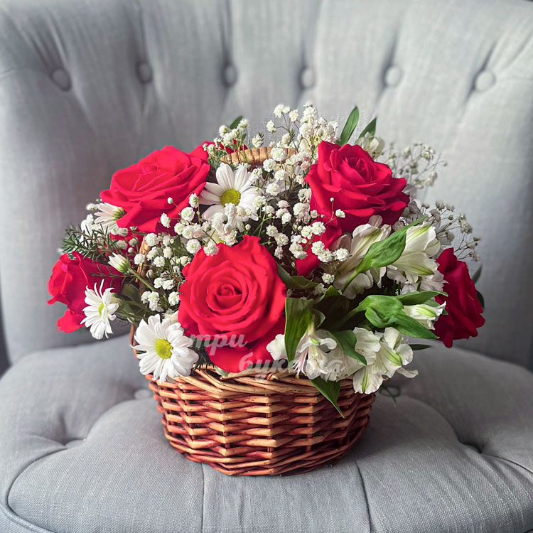 Корзина с альстромериями и розами