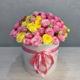 Шляпная коробка роз, эустом и гортензии