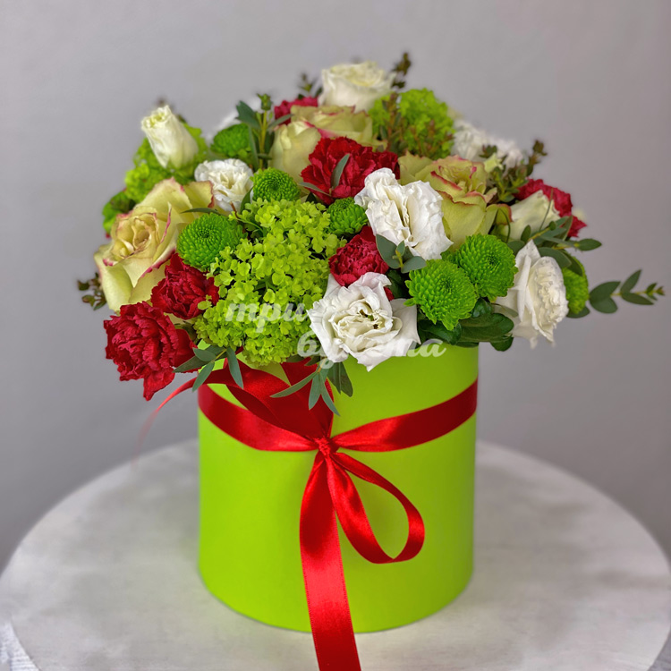 Зеленые и красные цветы в коробке